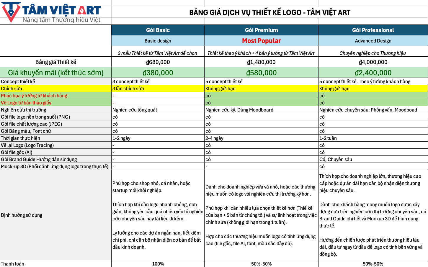 Điểm khác biệt của Tâm Việt Art là chúng tôi không chỉ “thiết kế logo”, mà xây dựng giải pháp thương hiệu toàn diện.